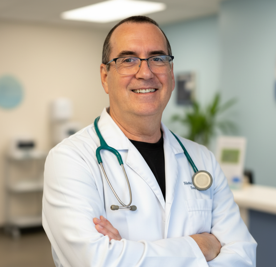 Reynol Polanco, FNP, está aquí para ti. Él combina su vasta experiencia y profundo conocimiento con un enfoque verdaderamente humano. Su objetivo es establecer un vínculo de confianza contigo, respetando siempre tus inquietudes y asegurándose de que entiendas perfectamente tu plan de tratamiento, haciéndolo claro y accesible.